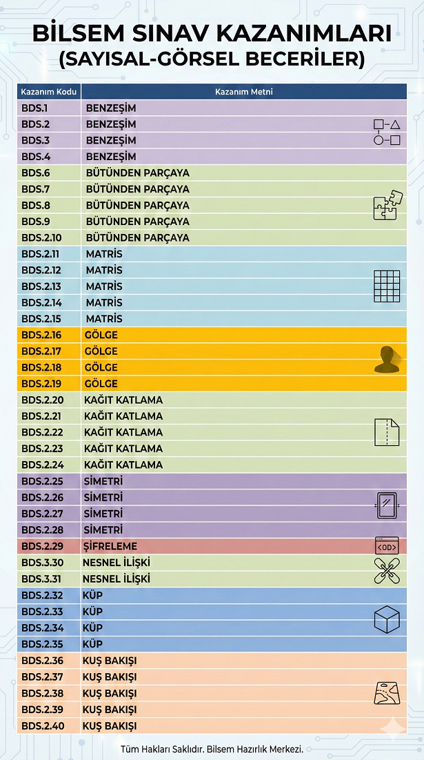 | Kazanım Kodu | Kazanım | Zorluk |